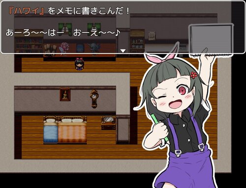 夏休みの宿題で夏休みの思い出をテーマに作文を書かなくてはいけない主人公。しかし、友達がめっちゃ羨ましい夏休みを過ごしているのを知って、自分の夏休みのエピソードではしょぼいと思われる!!ということを悲観した主人公が、別の作文に書き替えようというゲーム。町中を探索して作文に使えそうなワードを手に入れなければならないのだが、このワード集めが地味に大変。そして頭を使う。ということで難易度は高めの★4つ。特にリボンの回収にてこずったのだが、この製作者さんの決戦前のヒトリというゲームを遊んでいると少しわかりやすいかも知れない。